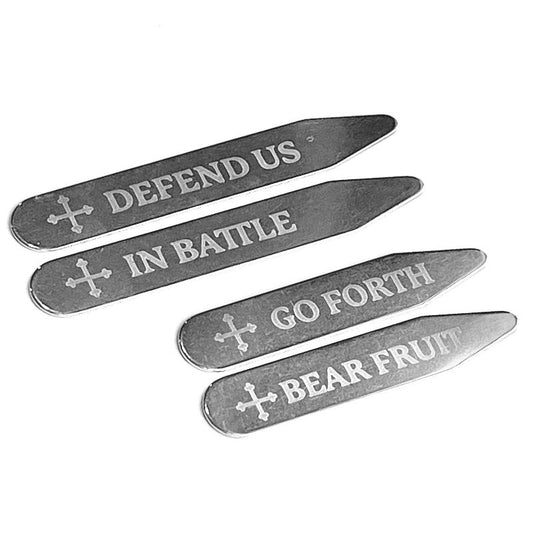 Engraved Catholic Collar Stays - St Michael Prayer Stainless Steel Men's Religious Gift