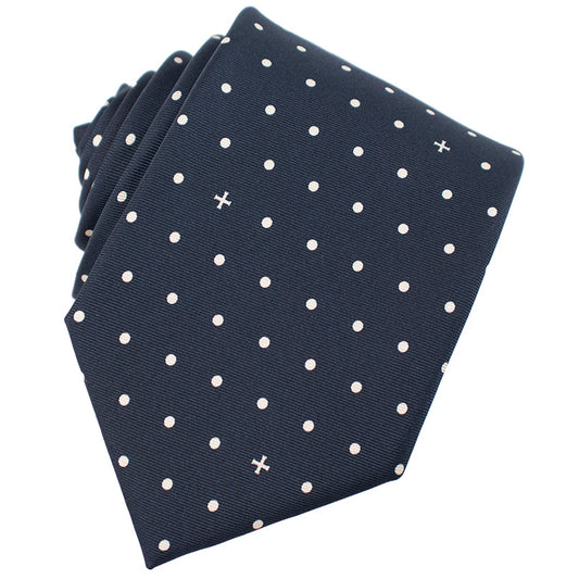 Heritage Polka Dot Cross Silk Necktie: Catholic Tie in Green & Antique Gold, Midnight & Ivory, or Burgundy & Rose