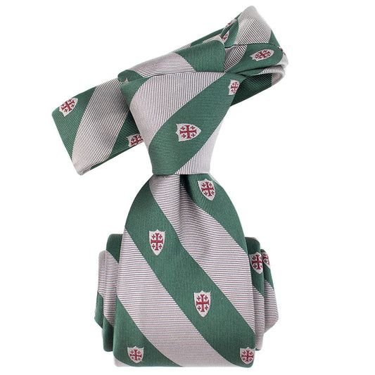 Jerusalem Cross Regimental Silk Necktie: Catholic Tie in Forest Green & Silver
