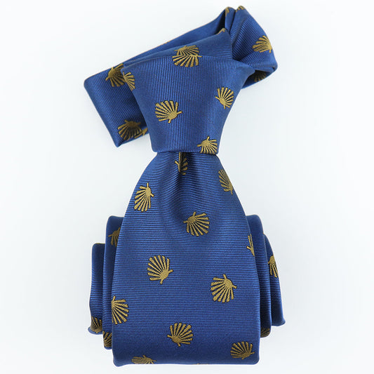 Camino de Santiago Silk Necktie: Catholic Tie in Royal Blue with Scallop Shell Motif