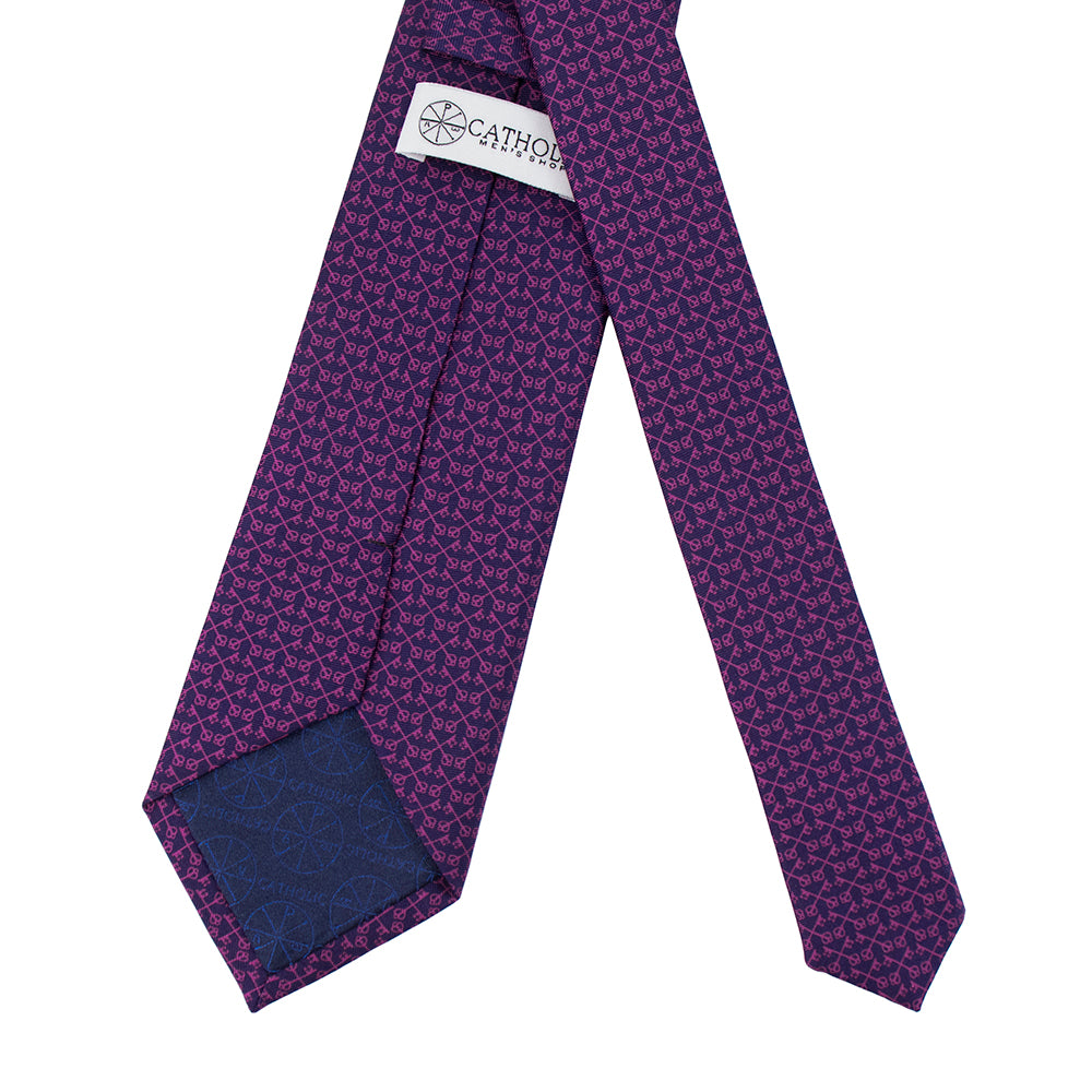 Keys of St. Peter Micro Pattern Silk Necktie: Catholic Tie in Rose & Azure, Blue & Silver Gray, or Royal Purple & Navy